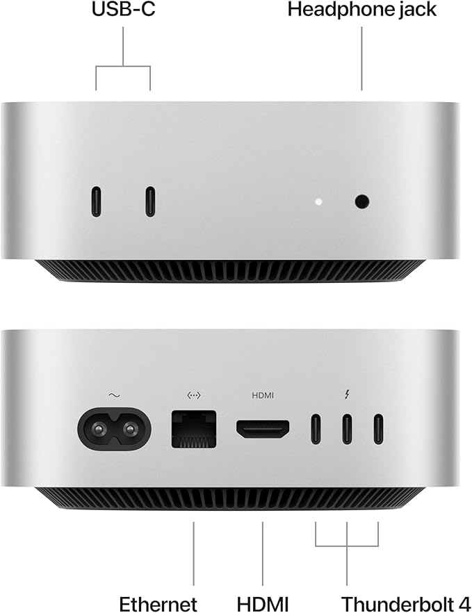 • Compact and Efficient: The Mac mini retains its compact form factor, making it ideal for home offices, creative workspaces, or any environment where desk space is at a premium. Despite its small size, it delivers desktop-level performance, offering a blend of portability and power.